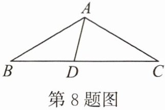 8. 如图,在△ABC中,AB= AC,点D为BC边上一点,∠B= 30°,∠DAB= 45°,求∠DAC的度数。