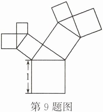 9. 有一个面积为$1$的正方形,经过一次“生长”后,在它的左右肩上生出两个小正方形,其中,三个正方形围成的三角形是直角三角形,再经过一次“生长”后,变成了如图所示的图形。如果继续“生长”下去,它将变得“枝繁叶茂”。请你算出“生长”了$2026$次后形成的图形中所有的正方形的面积和是(
