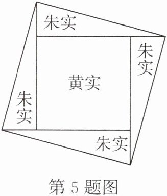 5. 赵爽弦图是一个以勾股形之弦为边的正方形,图中包含四个全等的勾股形和一个小正方形,其面积分别称为朱实和黄实。如图,设每一个勾股形的两条直角边长分别为 $ a $ 和 $ b $,若 $ ab = 8 $,且 $ a^{2}+b^{2}= 25 $,则黄实为(