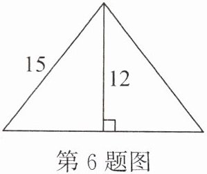 6. 如图,一个等腰三角形的一腰长为 15,底边上的高为 12,则底边长为