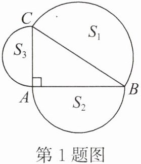 1. 如图,$ \angle A = 90^{\circ} $,以 $ \triangle ABC $ 三边为直径的三个半圆的面积分别为 $ S_{1} $,$ S_{2} $,$ S_{3} $,则 $ S_{1} $,$ S_{2} $,$ S_{3} $ 之间的关系为(