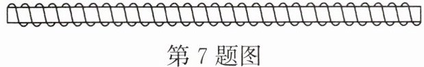 7. 如图所示,一根长90cm的灯管上缠满了彩色丝带。已知可近似地将灯管看作圆柱体,它的底面周长为4cm,彩色丝带均匀地缠绕了30圈。这条丝带全长多少厘米?