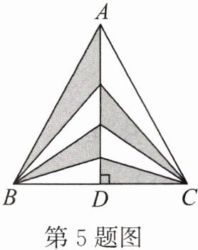 5. 如图,在△ABC中,AD是BC边上的高,AB= AC= 13cm,BC= 10cm,图中阴影部分面积之和为多少?