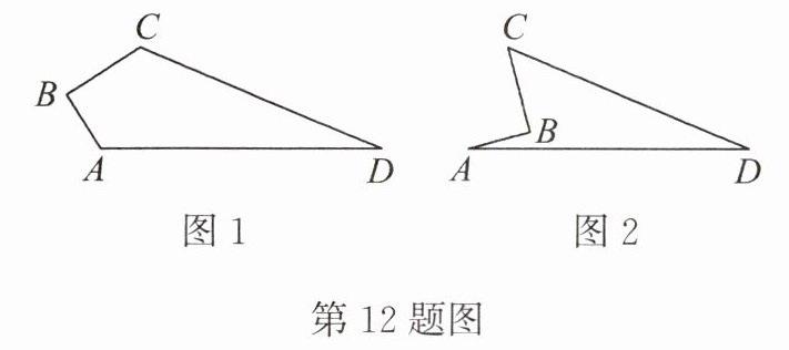 12. (8分)四边形$ABCD$中,$AB = 3$,$BC = 4$,$CD = 12$,$AD = 13$,且$\angle B = 90^{\circ}$,根据下列两个图形,分别求出四边形$ABCD$的面积。