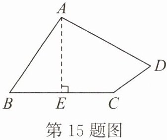 15. (10分)为迎接植树节的到来,红岩村街道准备对一块四边形空地$ABCD$进行绿化改造,某校数学兴趣小组的同学们帮助街道工作人员测量得到以下数据:$AB = 15$m,$CD = 8$m,$AD = 17$m。从点$A修一条垂直BC的小路AE$(垂足为$E$),$AE = 12$m,且$E恰好是BC$的中点。