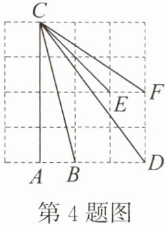 4. 如图是由16个边长为1的小正方形拼成的,连接这些小正方形的若干个顶点,得到5条线段$CA$,$CB$,$CD$,$CE$,$CF$,其中长度不是有理数的有