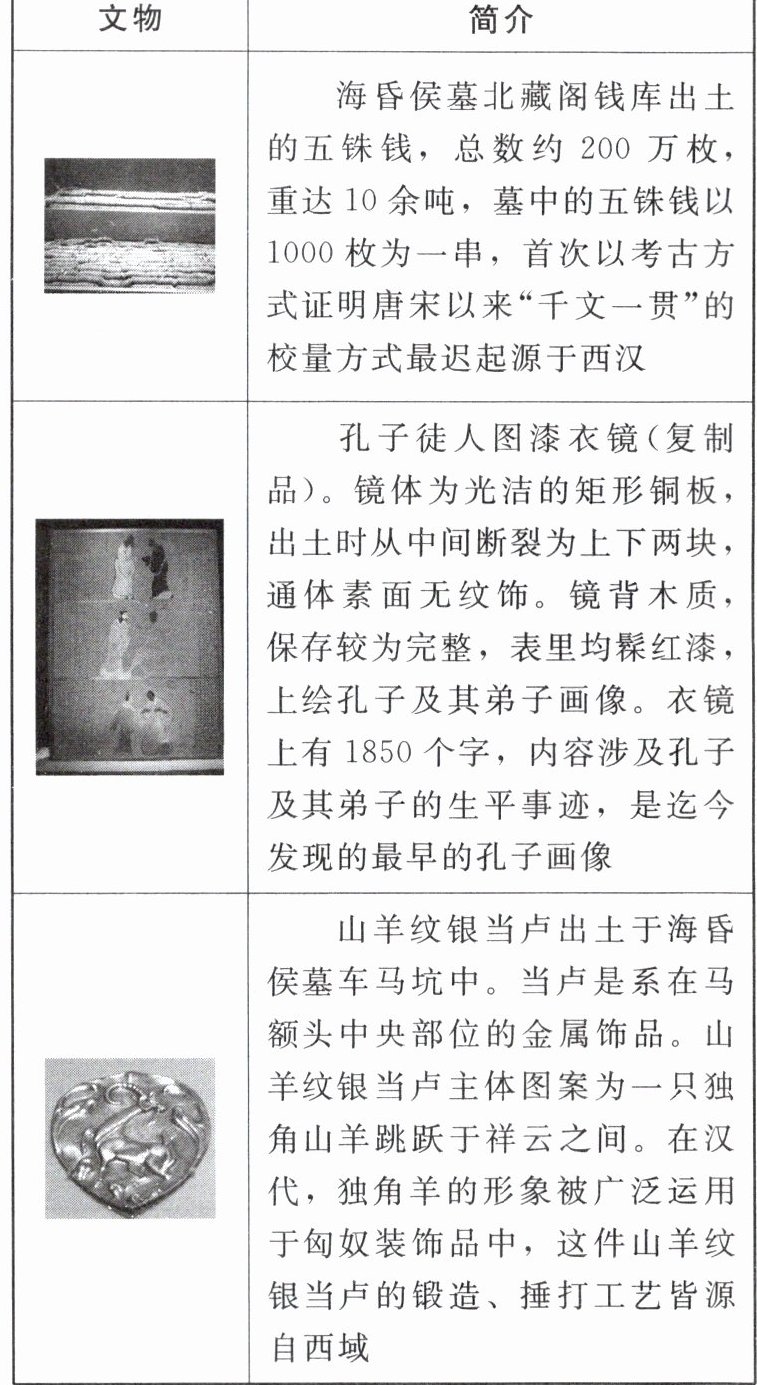 材料二 2024年2月27日《人民日报》(海外版)发表了《走近神秘海昏 领略大汉气象》的文章,文中写到西汉海昏侯刘贺墓入选“2015年度全国十大考古新发现”“百年百大考古发现”。以下为海昏侯墓中的部分文物。