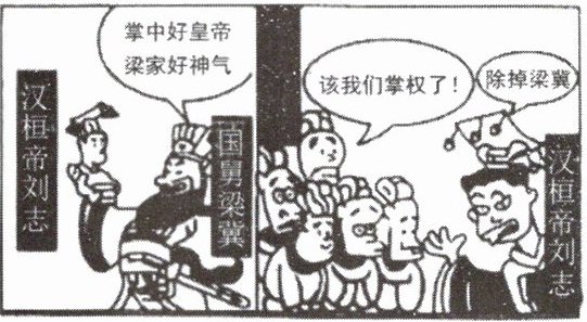 4. 历史漫画往往能简明地反映一定的历史现象。以下漫画反映出东汉中后期( )。