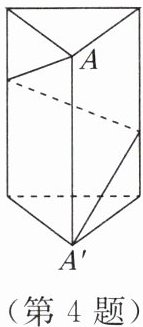 4. 如图所示的是一个底面为等边三角形的三棱镜,在三棱镜的侧面上,从点 $ A $ 到点 $ A' $ 镶有一圈金属丝,已知此三棱镜的高为 $ 5 cm $,底面边长为 $ 4 cm $,则这圈金属丝的长度至少是