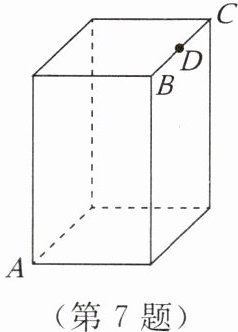 7. 如图,棱柱侧面都是长为 $ 8 cm $、宽为 $ 4 cm $ 的长方形,点 $ D $ 是 $ BC $ 的中点,在棱柱下底面的 $ A $ 处有一只蚂蚁,它想吃到上底面 $ D $ 处的食物,需要爬行的最短路程是 $ s cm $,则 $ s^{2} $ 是(