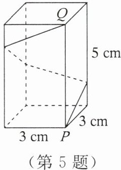 5. 如图,长方体的底面边长为 $ 3 cm $,高为 $ 5 cm $,若一只蚂蚁从点 $ P $ 开始经由四个侧面爬行一圈到达点 $ Q $,则爬行的最短路程为