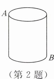 2. 如图,有一个底面周长为 $ 24 cm $、高为 $ 5 cm $ 的圆柱,一只蚂蚁沿侧面从点 $ A $ 到点 $ B $ 所经过的最短路线长为