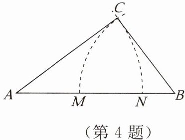 4. 如图,已知点 $ M $, $ N $ 是线段 $ AB $ 上的两点, $ AM = MN = 2 $, $ NB = 1 $,以点 $ A $ 为圆心,以 $ AN $ 的长为半径画弧;再以点 $ B $ 为圆心,以 $ BM $ 的长为半径画弧,两弧交于点 $ C $,连接 $ AC $, $ BC $,则 $ \triangle ABC $ 一定是(