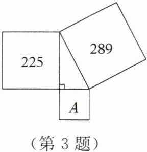 3. 如图,已知两个正方形的面积分别为$225$,$289$,则字母$A$所代表的正方形的面积为(