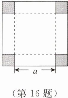 16. 【综合与实践】如图,在一张面积为$30cm^{2}$的大正方形卡纸上,剪去四个面积为$2cm^{2}$的小正方形(阴影部分),用以制作一个无盖的长方体纸盒,请你尝试用计算器确定该长方体纸盒的底面边长$a$的大小。(结果精确到百分位)