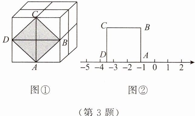 (3) 把正方形$ABCD$放到数轴上,如图②,使得点$A与-1$对应的点重合,那么点$D$在数轴上表示的数为____。