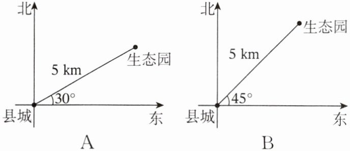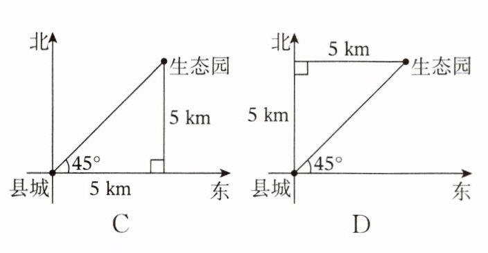 6. 生态园位于县城东北方向5km处,图中标示正确的是(