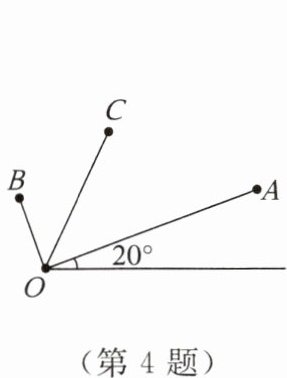 4. 如图所示,$\angle AOB = 90^{\circ}$,线段$OB$,$OC$,$OA$的长度分别为1,2,3,且$OC平分\angle AOB$,若将点$A的位置表示为(3,20^{\circ})$,点$B的位置表示为(1,110^{\circ})$,则点$C$的位置可表示为