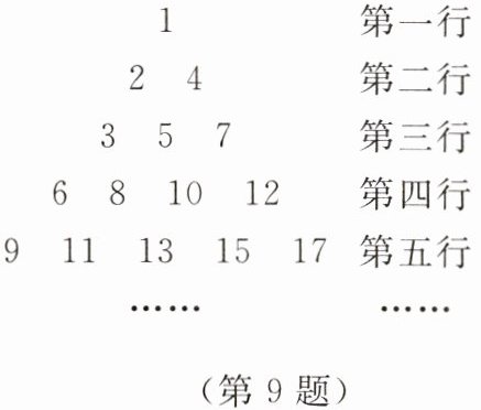 9. 将正整数按如图所示的规律排列下去。若用有序实数对$(m,n)表示第m$行、从左到右第$n$个数,如$(3,2)$表示实数5。