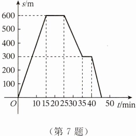 7. 张爷爷晚饭以后外出散步,碰到老邻居,交谈了一会儿,返回途中在读报栏前看了一会儿报,如图所示的是据此情境画出的图象,请回答下面的问题:
