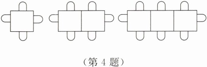 4. 学校食堂按如图所示的方式摆放餐桌和椅子,若用 $x$ 表示餐桌的数量,$y$ 表示椅子的数量,请你写出椅子数 $y$(把)与餐桌数 $x$(张)之间的关系式: