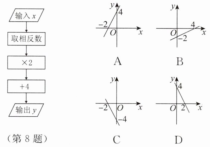8. 在如图所示的计算程序中,$ y $ 与 $ x $ 之间的函数图象应为(