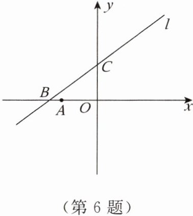 6. 如图,已知直线 $ l: y = kx + 6 $ 与 $ x $ 轴、$ y $ 轴分别交于点 $ B $,$ C $,点 $ B $ 的坐标是 $ (-8, 0) $,点 $ A $ 的坐标是 $ (-6, 0) $。
