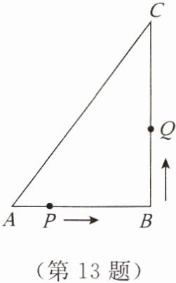 13. 如图,在 $ \triangle ABC $ 中,$ AB : BC : CA = 3 : 4 : 5 $,且周长为 $ 36\ cm $,点 $ P $ 从点 $ A $ 开始沿 $ AB $ 边向点 $ B $ 以 $ 1\ cm/s $ 的速度移动;点 $ Q $ 从点 $ B $ 开始沿 $ BC $ 边向点 $ C $ 以 $ 2\ cm/s $ 的速度移动。如果点 $ P $,$ Q $ 同时出发,经过 $ 3\ s $,$ \triangle PBQ $ 的面积为多少?