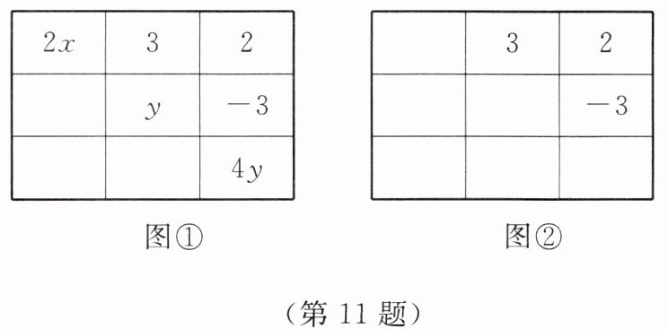 11. 如图,在$3×3$的网格内,填写了一些代数式。