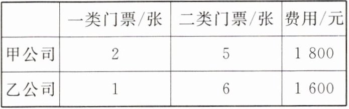 5. 某旅行社组织甲、乙两个公司的部分员工赴某景点游览,其中预订的一类门票、二类门票的数量和所花费用如下表: