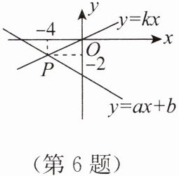 6. 如图,已知函数$y = ax + b和y = kx的图象交于点P$,则根据图象,可得关于$x$,$y的二元一次方程组\begin{cases}y = ax + b,\\y = kx\end{cases} $的解是