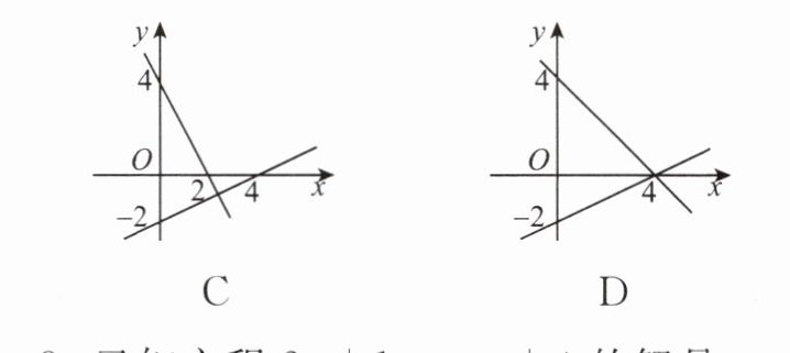 2. 若一次函数$y = 3x + 6与y = 2x - 4的图象的交点坐标为(a,b)$,则解是$\begin{cases}x = a,\\y = b\end{cases} $的方程组是(