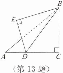 13. 如图,在 $ \triangle ABC $ 中,$ \angle ACB = 90° $,$ BC = 8 $,点 $ D $ 是 $ AC $ 边上的一个动点,将 $ \triangle ABC $ 沿 $ BD $ 所在的直线折叠,点 $ C $ 的对应点为点 $ E $,若 $ CD = 6 $,则 $ C $,$ E $ 两点之间的距离为