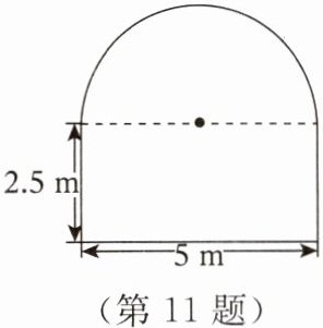 11. 如图,某隧道的横截面由半圆和长方形构成,其中长方形的长为 $ 5\,m $,宽为 $ 2.5\,m $,一辆卡车装满货物后,高为 $ 4.3\,m $,宽为 $ 3\,m $,它