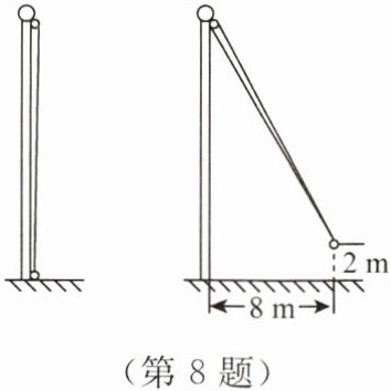 8. 如图,小亮将升旗的绳子拉到旗杆底端,绳子末端刚好接触到地面,然后将绳子末端拉到距离旗杆 $ 8\,m $ 处,发现此时绳子末端距离地面 $ 2\,m $,则旗杆的高度(滑轮上方的部分忽略不计)为