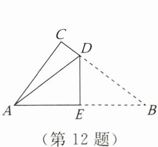 12. 如图,$ \triangle ABC $ 是一张纸片,$ \angle C = 90° $,$ AC = 6 $,$ BC = 8 $,现将其折叠,使点 $ B $ 与点 $ A $ 重合,折痕为 $ DE $,则 $ DE $ 的长为