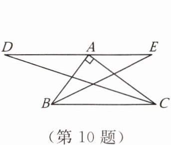 10. 如图,在 $ Rt\triangle ABC $ 中,$ \angle BAC = 90° $,过顶点 $ A $ 的直线 $ DE // BC $,$ \angle ABC $,$ \angle ACB $ 的平分线分别交 $ DE $ 于点 $ E $,$ D $。若 $ AB = 6 $,$ BC = 10 $,则 $ DE = $(