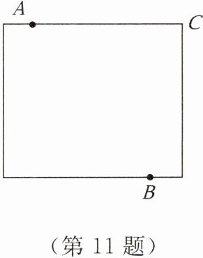 11. 【数学应用】为进一步打造宜居城市,某区拟在新竣工的矩形广场的内部修建一个音乐喷泉,要求音乐喷泉$P到广场的两个入口A$,$B$的距离相等,且到广场管理处$C的距离等于A和B$之间的距离的一半,$A$,$B$,$C$的位置如图所示。请利用尺规作出音乐喷泉$P$的位置。并说明理由。