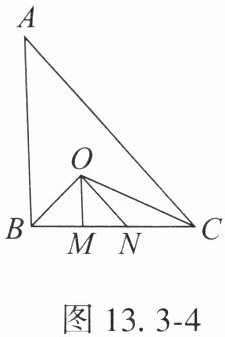 6. 如图 13.3 - 4,在$\triangle ABC$中,$∠ABC和∠ACB的平分线交于点O$,过点$O分别作OM// AB$,$ON// AC$,交$BC于点M$,$N$,$∠BOC = 110^{\circ}$,求$∠MON$的度数。
