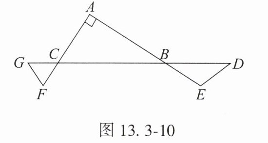 4. 如图 13. 3 - 10,线段 $AF\perp AE$,垂足为点 $A$,线段 $GD$ 分别交 $AF$,$AE$ 于点 $C$,$B$,连接 $GF$,$ED$,则 $\angle D + \angle G + \angle AFG + \angle AED$ 的度数为