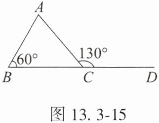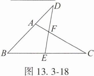 4. 如图 13.3 - 18,$E为\triangle ABC的BC$边上一点,点$D在BA$的延长线上,$DE交AC于点F$,$\angle B = 46^{\circ}$,$\angle C = 30^{\circ}$,$\angle EFC = 70^{\circ}$,则$\angle D= $