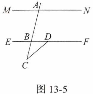 11. 如图 13 - 5,已知 $ MN// EF $,点 $ A $ 在 $ MN $ 上,点 $ B $ 和点 $ D $ 在 $ EF $ 上,点 $ C $ 在 $ AB $ 的延长线上,$ \angle MAB = 76^{\circ} $,$ \angle C = 36^{\circ} $,则 $ \angle BDC $ 的度数是