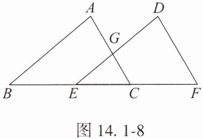 7. 如图 14.1 - 8,已知$\triangle ABC\cong\triangle DEF$. 如果$GC = 4$,$DF = 9$,求$AG$的长.
