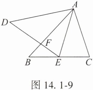 *8. 如图 14.1 - 9,$\triangle ABC\cong\triangle ADE$,点$E在边BC$上,$AB与DE交于点F$. 求证:$\angle CAE = \angle BAD$.