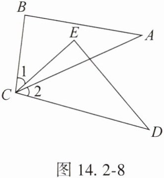 7. 如图 14.2 - 8,已知$\angle 1 = \angle 2$,$BC = CE$,$CA = CD$. 求证:$\triangle ABC\cong\triangle DEC$.