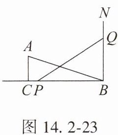 4. 如图 14.2 - 23,$AC\perp BC$,垂足为 $C$,$BC = 12\ cm$,$AC = 4\ cm$,射线 $BN\perp BC$,垂足为 $B$,动点 $Q$ 从点 $B$ 出发以 $2\ cm/s$ 的速度沿射线 $BN$ 运动,点 $P$ 为射线 $BC$ 上一动点,满足 $PQ = AB$,当点 $Q$ 运动