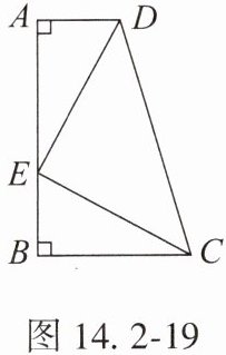 如图 14.2 - 19,在四边形 $ABCD$ 中,$\angle A= \angle B = 90^{\circ}$,$E$ 是 $AB$ 上的一点,且 $AE = BC$,连接 $DE$,$EC$,$DE = EC$。求证:$DE\perp CE$。