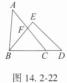 3. 如图 14.2 - 22,在 $\triangle ABC$ 和 $\triangle BDE$ 中,点 $C$ 在边 $BD$ 上,$AC$ 交 $BE$ 于点 $F$。若 $AC = BD$,$AB = ED$,$BC = BE$,$\angle ACB = 50^{\circ}$,则 $\angle AFB= $