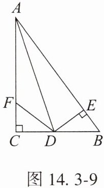 8. 如图 14.3 - 9,在 $ Rt \triangle ABC $ 中,$ \angle C = 90° $,$ AD $ 平分 $ \angle BAC $,$ DE \perp AB $ 于点 $ E $,点 $ F $ 在边 $ AC $ 上,$ BD = DF $。