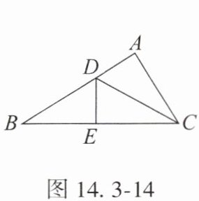 3. 如图 14.3 - 14,在 $Rt\triangle ABC$ 中,$\angle A = 90^{\circ}$,点 $D$ 在边 $AB$ 上,$DE\perp BC$,垂足为点 $E$,$AD = DE$,$\angle B = 32^{\circ}$,则 $\angle BCD$ 的度数为